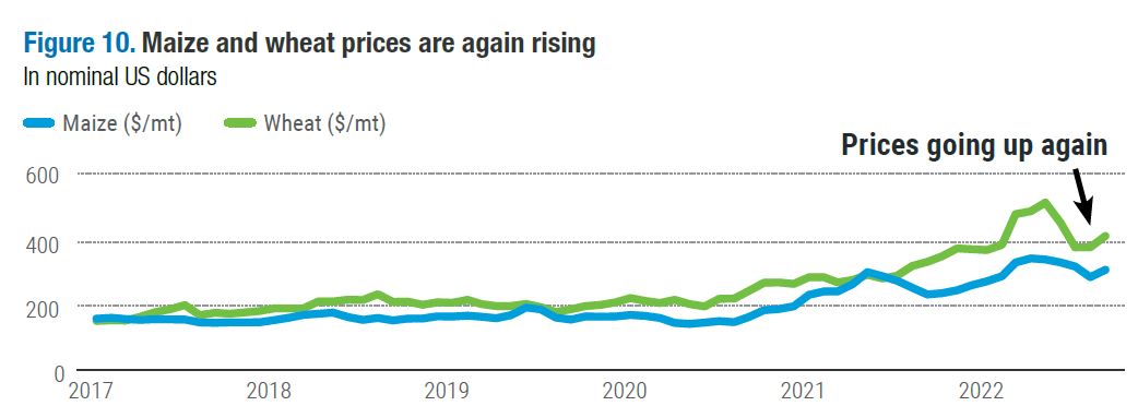 黑海运粮协议前景的不确定性已经影响到谷物价格。粮农组织的报告显示,虽然9月的食品价格指数总体下降,但当月谷物价格指数比8月上升1.5%至147.8,国际小麦价格上涨2.2%。