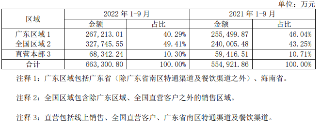 从营收来看,尽管今年前三季度广东区域的经销商数量有所减少,但仍是东鹏饮料的重要支柱。今年前三季度广东区域贡献了26.72亿元的营收,占总营收的40.29%。