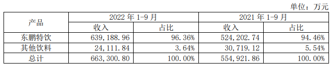 至于东鹏饮料被诟病的另一问题——产品类型单一,今年前三季度变得更加严重。今年前三季度,东鹏特饮仍是公司的核心收入来源,该产品实现营收为63.92亿元,占总营收的96.36%;而其他饮料收入为2.41亿元,同比减少21%。