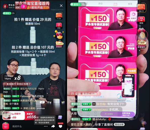 另一方面,罗永浩的淘宝首秀的延续性看起来要好于他的抖音首秀。