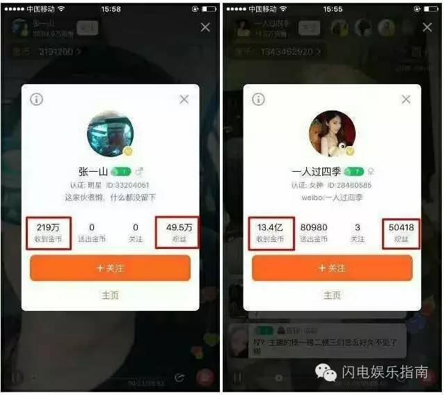 明星与网红打赏对比