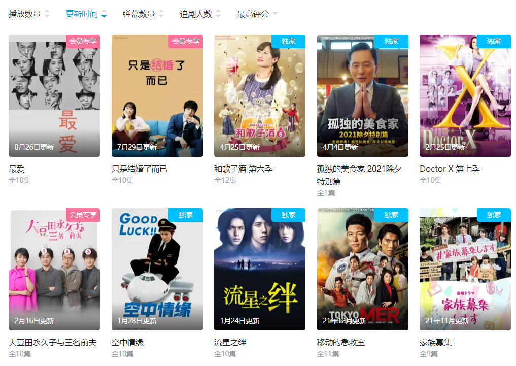 但这些平台的补新动作,已经远远落后。比如优酷2021年只上线了《最爱》《微微一笑很倾城》等三部日剧,今年并无新动作;腾讯视频今年初上线了高分日剧《大豆田永久子与三名前夫》等,但其中多部如《紧急救命》系列都年份较早。