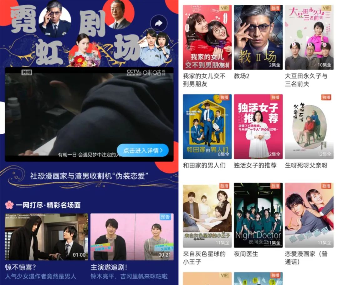 咪咕发力日剧大约是从去年3月设立日剧专区开始的,起初引入了《永誓相随》《笑判黑白的熊猫》等六部新剧,并宣布未来三年将引入近百部日剧。“TBS卖B站,富士卖咪咕”的说法,也印证了咪咕有相对稳定的内容来源。