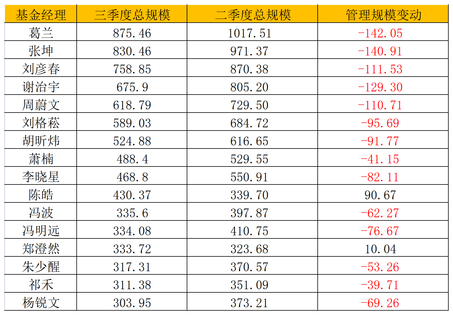 公募基金的三季度报告已经悉数出炉,经过一个季度的市场洗礼,公募基金经理的规模榜单又有哪些变动?