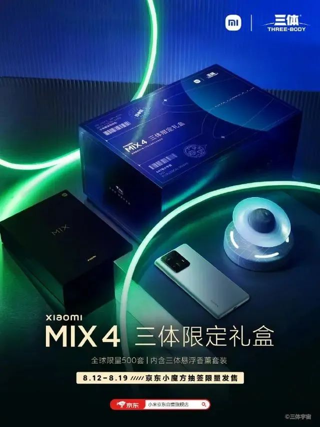 在与VIVO NEX3 5G联名后,又过了2年,小米旗下主打性能的旗舰机型MIX4也与《三体》联名,售价6299元的500个联名礼盒里还包括了刘慈欣的亲笔签名小说一套,比起VIVO的联名内容,小米在联名营销这块玩得更溜。