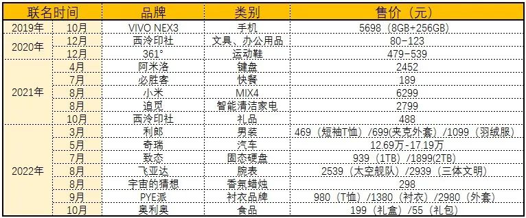 较早的商业联名合作,是2019年10月VIVO NEX3 5G推出的500套限量礼盒,附赠《三体》手机壳、铜版书签和定制笔记本。