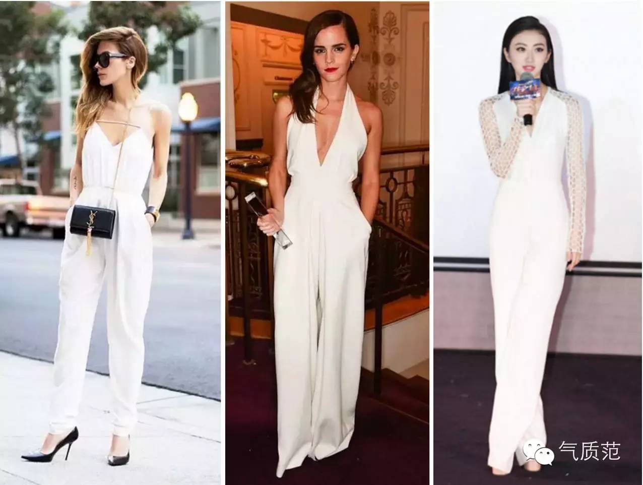 时尚博主们,以及EMMA,景甜等活跃在时尚舞台的明星,也都穿过白色连体裤,不同的是她们都把平底鞋换成了高跟鞋。