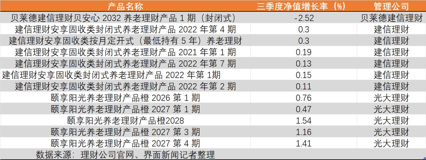 从表现最好的建信理财安享固收类封闭式养老理财产品2022年第4期来看,该产品成立于今年5月24日,三季度收益率0.30%,截至季度末总规模12.17亿元。