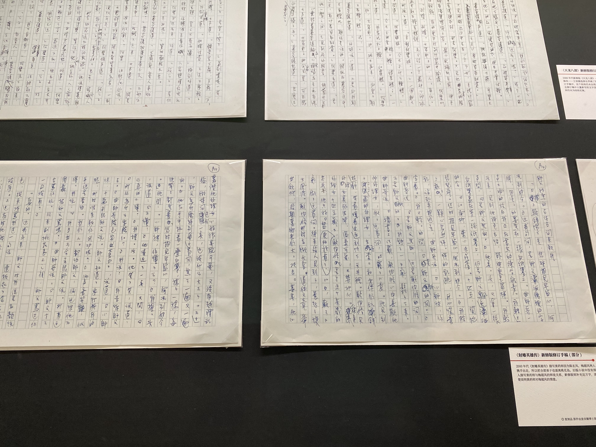 除了《飞狐外传》与《素心剑》(后改名为《连城诀》)在杂志上连载外,其余的作品都是每日见报,连载于报章上,基本上所有创作手稿都被送到排字房,而没有保留下来。金庸封笔后历时十年修订旧版小说,2000年-2006年,金庸又再次全面修订《金庸作品集》。此次展览就展出了《天龙八部》《神雕侠侣》等作品的部分修订手稿的复制件。“珍贵的手稿能让读者更了解在金庸在创作时的心路历程。”劳逸民表示。