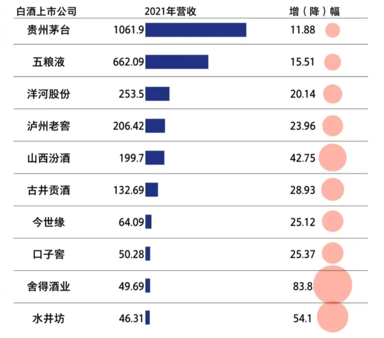 根据各公司年报显示,古井贡酒2021年全年营收132.7亿元,同比增长28.93%,净利润21.86亿元,同比增长23.9%。