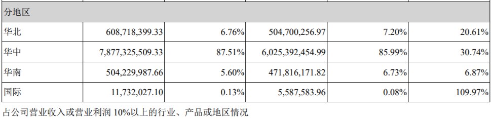 2022年上半年,华中地区为古井贡酒贡献了78.77亿元的收入,营收占比为87.51%。