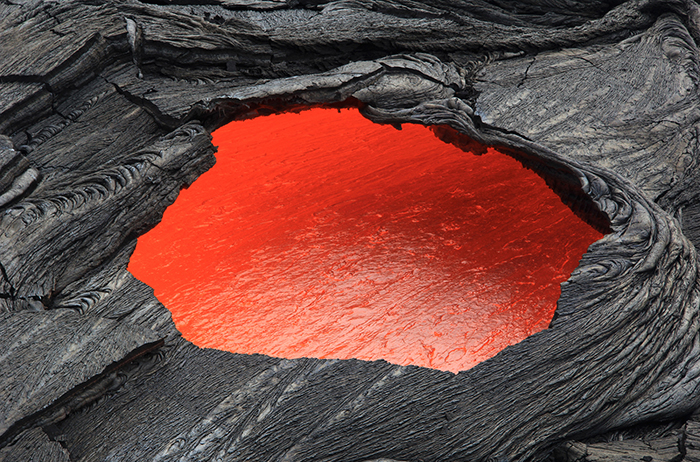 2.近距离观看岩浆,摄影师距离这个“天窗”大概只有6米(20英尺)远。岩浆正朝画面右上方流去。