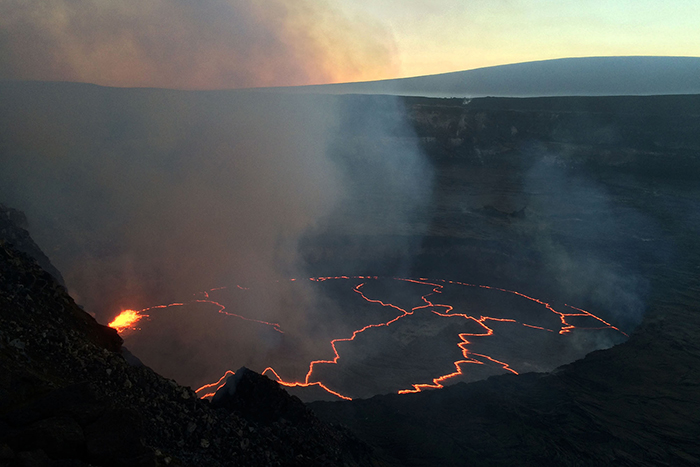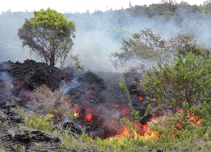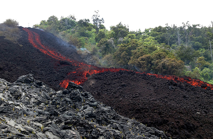 5.2016年6月29日,当岩浆流经巴利峰(pali)的陡峭地段时,一股狭窄的熔岩流了进来。