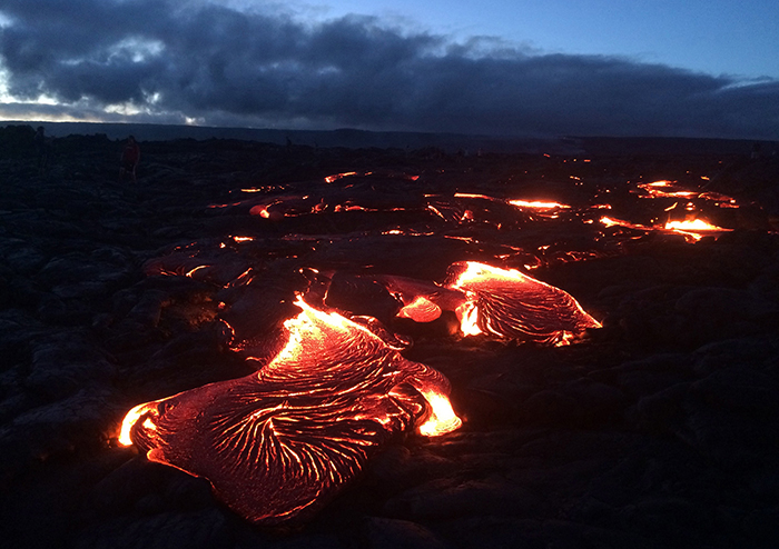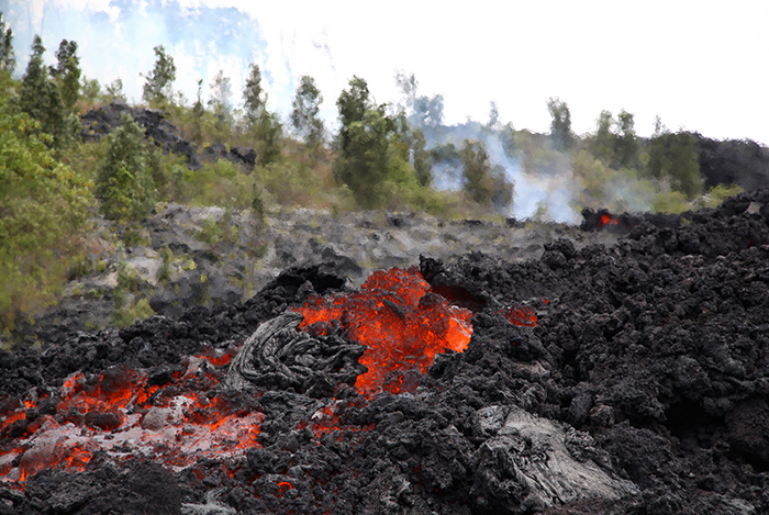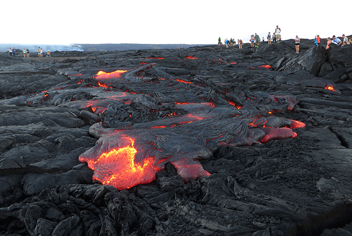夏威夷基拉韦厄火山(Kīlauea Volcano)流出的滚烫岩浆(名为“61g”)在五月的时候就已有喷发之势,它们流向大海的旅程,到目前已经持续了几个月时间。七月的时候,岩浆已经触碰到了海水,并且在卡莫库纳海滩(Kamokuna)附近形成了几个入海点。这些岩浆基本不会对当地居民造成威胁,它们都沿着从前的岩浆轨迹流动。岩浆的流动一直处于夏威夷火山观测站(Hawaiian Volcano Observatory)的地理学家们的观测之下,而游客们已经纷纷在岩浆周围展开了郊游、乘船观赏、近距离查看61g入海点等活动。自1983年1月之后,基拉韦厄火山的喷发活动一直持续至今。