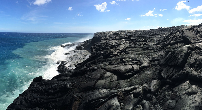14.近距离观看从卡莫库纳海滩东部流入大海的基拉韦厄火山熔岩流。