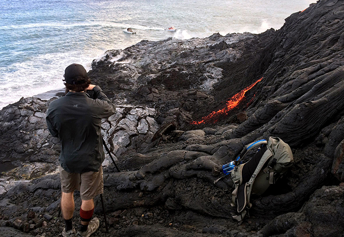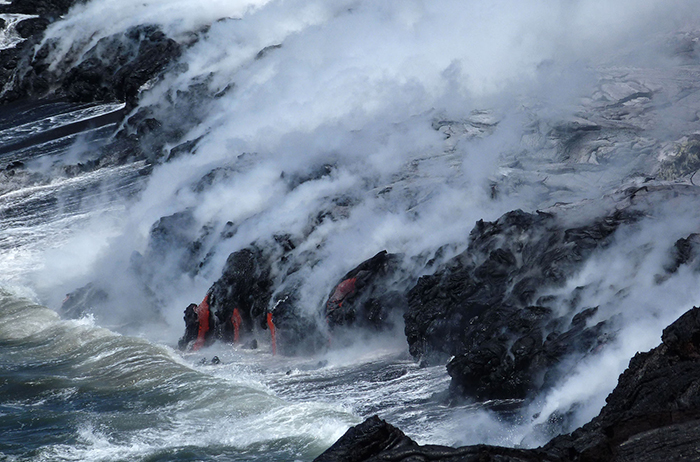 19.从岩浆海景游览公司(Lava Ocean Tours)的船上观赏到的正流入大海的岩浆。