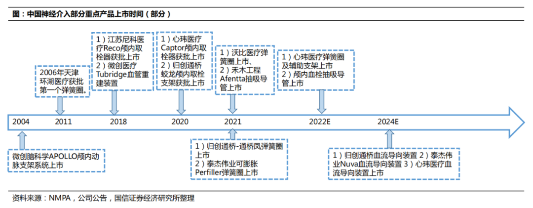 弹簧圈产品在国内的历史不长,2011年,国产弹簧圈、微导管等产品大量获批,才开启国产神经介入产品“元年”。