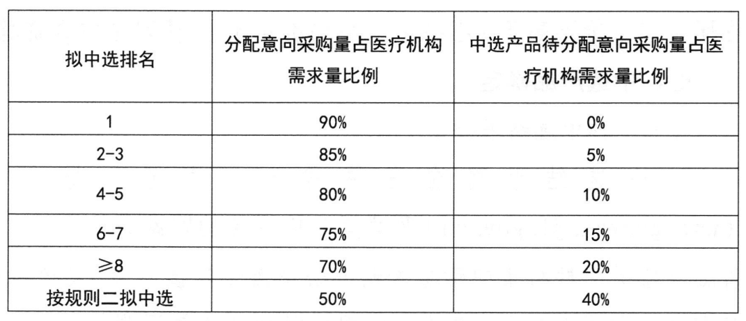 1、中选产品按中选价格由低到高排名顺序,梯度分配意向采购量。如出现非整数则向下取整至个位。