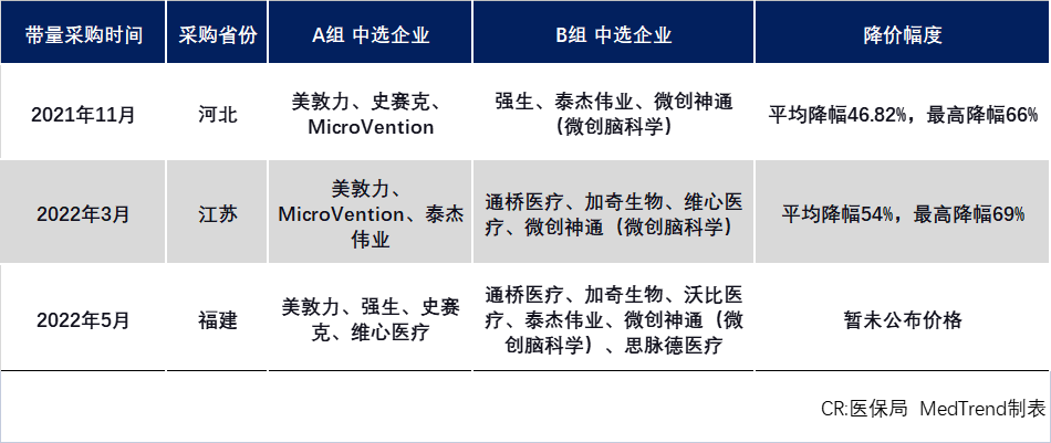 此前,弹簧圈仅在河北、江苏、福建三个地区以省为范围进行集采。