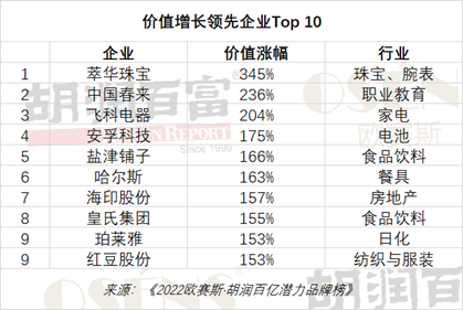 胡润百富董事长兼首席调研官胡润表示:“为了能够反映未来几年的趋势,我们榜单的评选维度是企业的营收增速和市值增速,营收增速代表的是消费者对企业的肯定,市值增速代表的是投资者对企业的肯定。”
