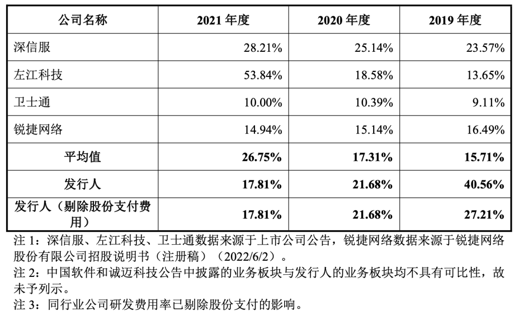 相比于同行业可比上市公司的研发投入率,麒麟信安的研发投入率远低于平均值。