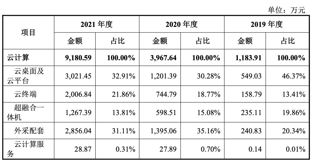 其云计算业务的收入占比从2019年的0.12亿元、2020年的0.40亿元增长至2021年的0.92亿元,三年复合增长率达到了178.47%。