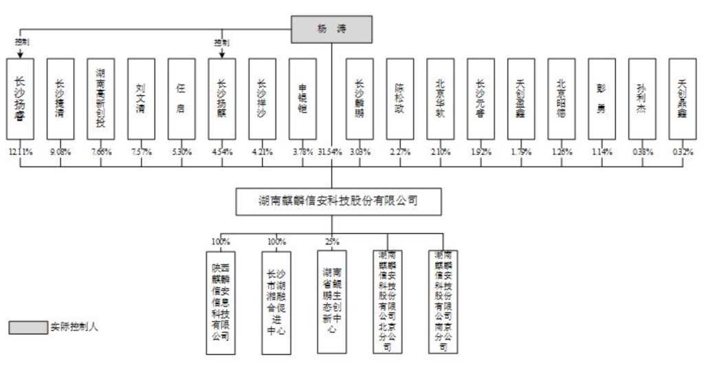 麒麟信安的实际控制人为董事长杨涛,杨涛合计持股比例为48.19%。