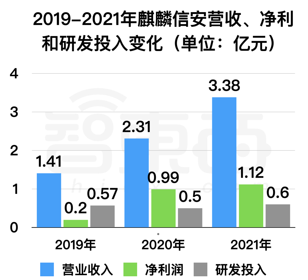 ▲麒麟信安营收、净利和研发投入变化(2019年至2021年)