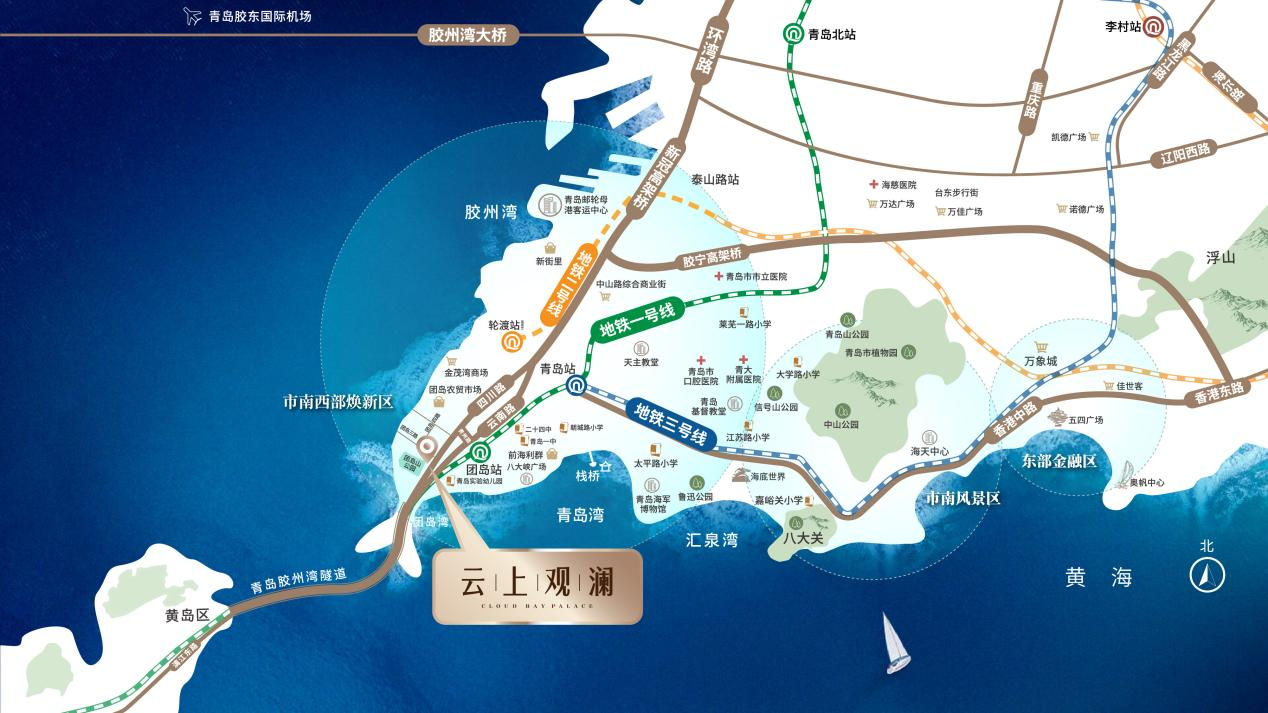 云上观澜由青铁置业与中瑞鼎峰联袂合著。项目融合两大集团优势,精研市南地域人居,引入北欧低碳技术,将打造成为青岛可持续社区范本。项目落子寸土寸金的市南前海一线,南向汇泉湾、青岛湾,右侧团岛湾、北侧胶州湾,兼具自然资源与城市人文。与约5万m²团岛山森林公园一路之隔,因地造境,打造“海上十象”主题园林,内外揽双园,成就公园里的生态隐境。