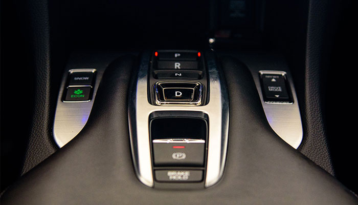 坐进这款新车驾驶席首先会发现传统放置排挡杆的地方“光秃秃”,即便方向盘下方也找不到那根换挡杆。取而代之的是在放置传统排挡杆地方多出了几个按键。事实上,本田这套创新的SBW按键式电子换挡并非是首用,广汽讴歌首款国产车型CDX也采用这种电子换挡方式。
