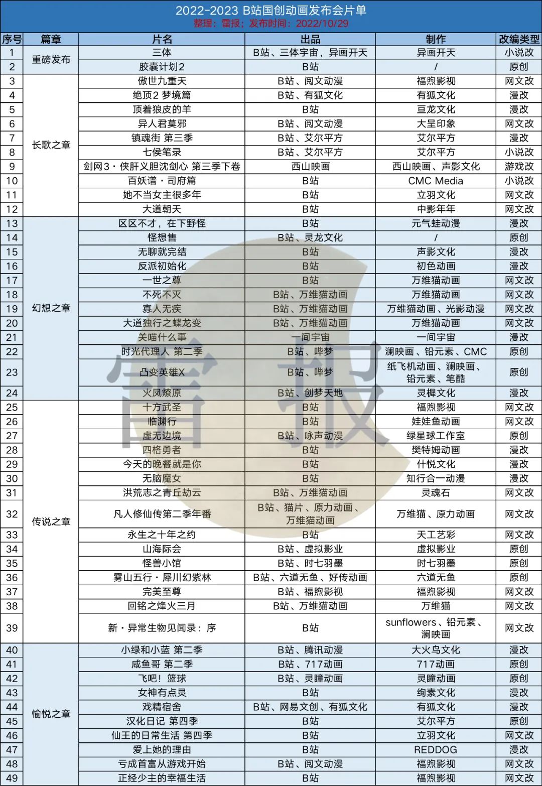 下午,B站举行了其2022-2023年度的国创发布会,历经一个多小时,49部动画发布完毕。
