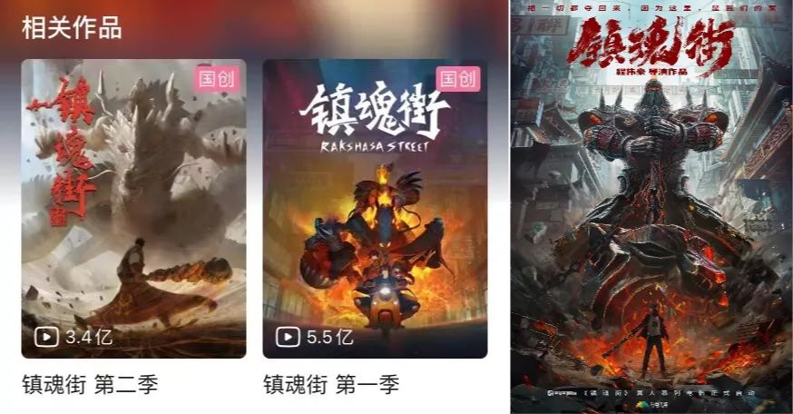 重磅作品动画《镇魂街》改编自许辰此前在有妖气连载的同名漫画,第一、二季在B站分别获得5.5和3.4亿的播放量,以及914.6万系列追番,为B站国产动画“最多追番”的第四位。作为知名IP,除了动画,镇魂街在影视剧、游戏等方面均有开发。10月20日,由优酷、耐飞、奥飞娱乐出品的IP改编网剧《镇魂街之热血再燃》在横店正式开机,由敖瑞鹏、张予曦等出演。6月,《镇魂街》真人电影也宣布启动,由《缉魂》导演程伟豪执导。第三季依旧由艾尔平方制作。