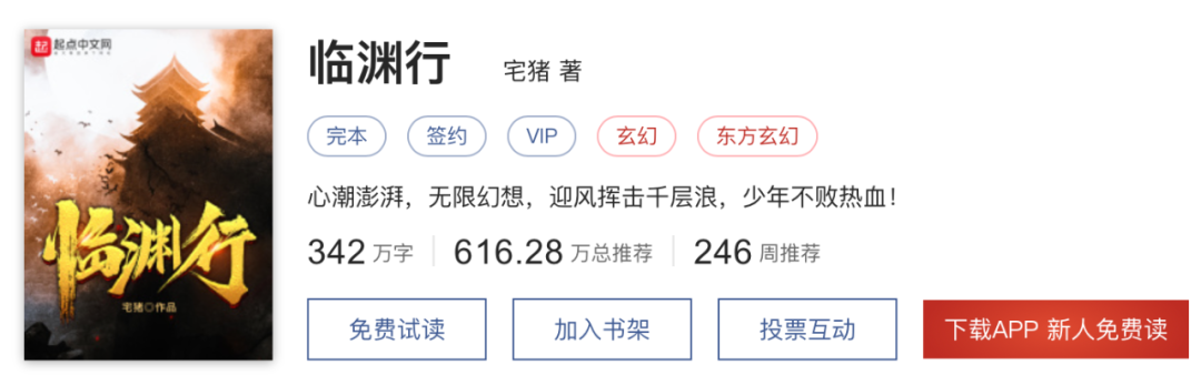《临渊行》动画制作方为娃娃鱼动画,原作为连载于起点中文网的同名东方玄幻类小说,在起点有616.28万总推荐,作者为宅猪。