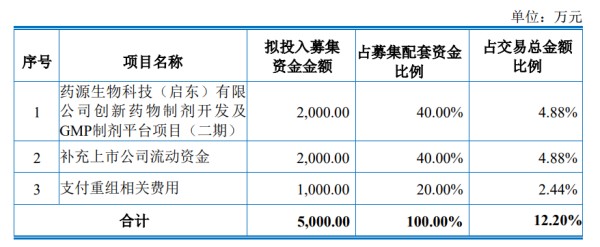 另外,皓元医药拟向其控股股东安戌信息发行股份募集配套资金不超过5000万元,将用于标的公司新建项目投资、补充上市公司流动资金以及支付本次重组交易相关费用。