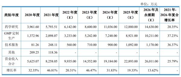 在收益预测方面,药源药物营业收入在2022年至2025年期间分别达到0.99亿元、1.46亿元、1.92亿元和2.29亿元。其中,距离现在最近的2022年度营业收入增长率将为20.31%,大幅低于已经完成的2021年度;但是,2023年度的营业收入预计又将高达46.47%,2024年预测值为31.83%,均明显高于2022年度。相比之下,2022年度营收增长率预测值显得比较特殊。