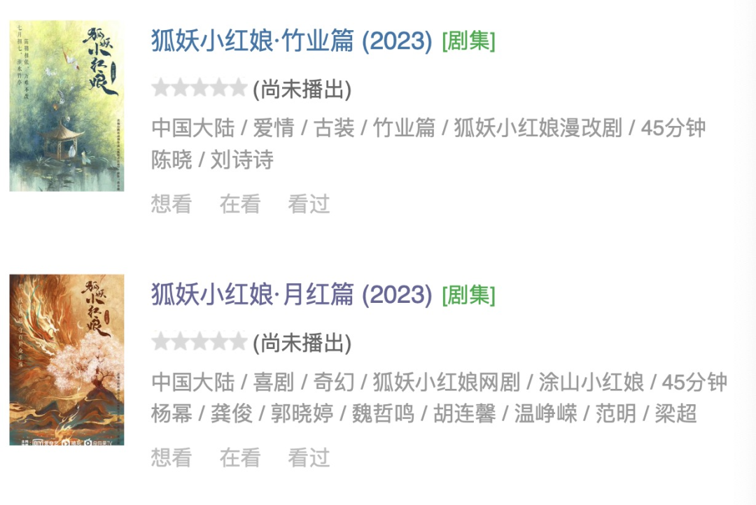 现在能财大气粗请来两个头部演员的,只有不差钱的制片公司。他们做的是自己的版权剧,自己垫付项目成本预算,话语权掌握在自己手中,最后再谈各家平台、电视台的版权。眼下正当红的恒星引力,就是其中之一。他们的《狐妖小红娘·月红篇》请来了杨幂、龚俊,《狐妖小红娘·竹业篇》传闻请来了刘诗诗、陈晓。