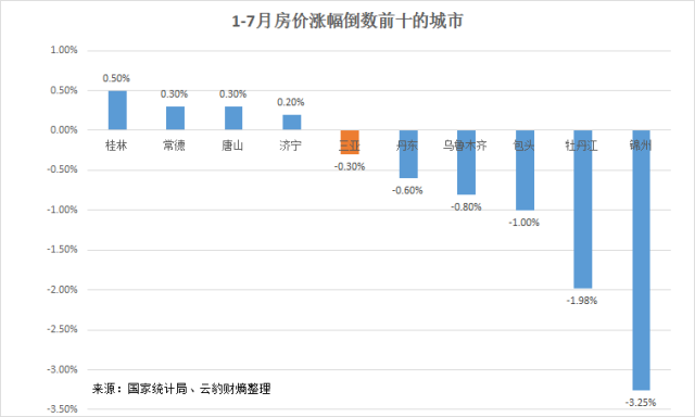 降至历史低点的房贷利率、优惠的购房税率和资产荒催生中国楼市今年迎来新一轮暴涨。但是我们发现,即便市场如今年这般火爆,全国70个大中城市中,1-7月房价还在下跌的城市仍然达到了六个。也就是说,在国家全面发力去库存的背景下,接近十分之一的大中城市的房价仍在下跌,更何况那些相对无名的中小城市呢?