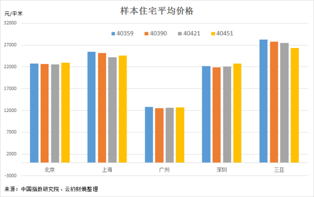 或许你认为中指院的数据可能有失偏颇,但是三亚房管局公布的房屋成交均价数据给出了同样的趋势和类似的房价水平。同时,中指院公布的北上广深的样本房价数据又是符合我们对一线城市房价变化的印象的。因此,中指院数据还是有一定参考意义的。