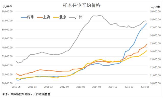 虽说没有涨,但至少也没有跌,说泡沫破裂是否言过其实?实际上,是国家统计局的数据过于“仁慈”了。我们来看下中国指数研究院的数据,从2010年6月(数据起始月份)的超过2.8万/平跌至了今年7月的略低于1.8万/平,六年时间里跌去35%,这还没算资金本身的成本。