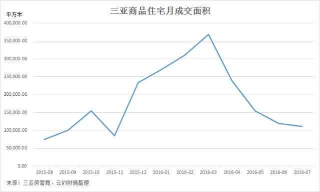 从三亚房管局公布的商品住宅成交面积数据(与记者获悉的数据有一定出入)变化趋势上看,16个月的库存去化周期的估计似乎仍然偏乐观,因为上半年成交面积呈现出冲高回落的态势,目前成交已经回落至接近去年时的水平。