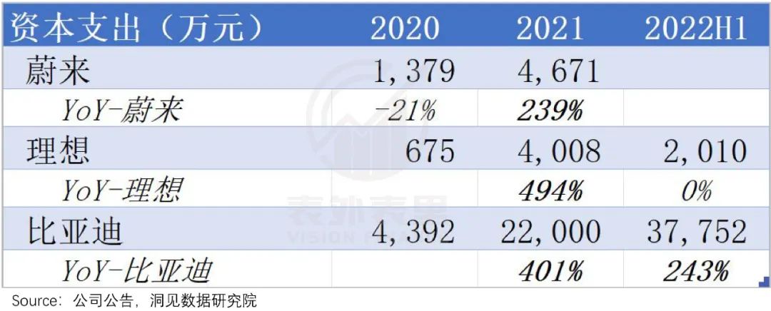 据草根调研,众车企从2021年开始,资本支出迅速攀升,同比甚至达到2-5倍。
