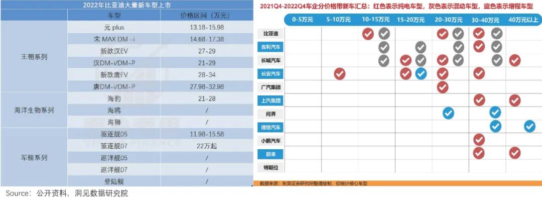 可以看到,这些品牌产品逐渐从“油改电”切换到纯电架构,加快了新能源产品的投放。2022H2将上市的达10款,全年总计将达15款。