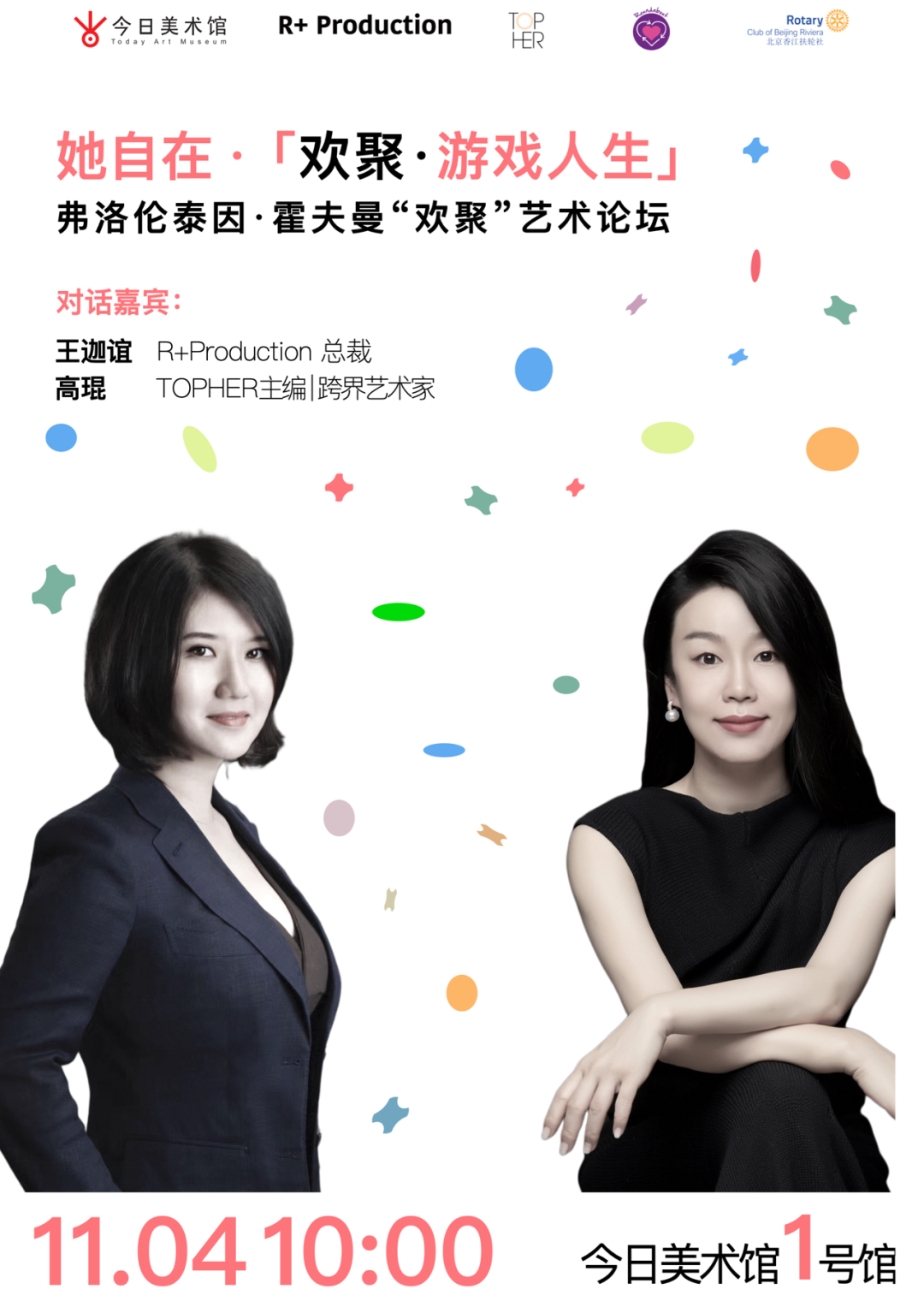 此外,展览现场,TOPHER主编、跨界艺术家高锟、 “大黄鸭之父” 弗洛伦泰因●霍夫曼及R+Production 总裁王迦谊还将展开一场趣味对话。如果想和我们一同感受纯粹的快乐,欢迎前来今日美术馆,长按识别下方小程序码即可报名。