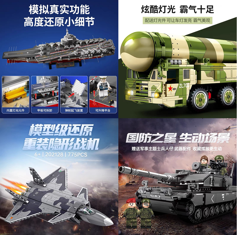 例如森宝的福建舰、东风41洲际弹道导弹车、歼-15战斗机、99A主战坦克积木等已经成为典藏级军模产品。