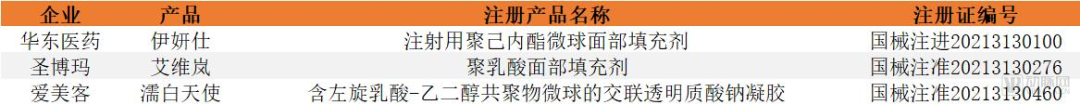 国内已经有三款基于组织再生材料的医美填充类除皱产品获批上市,分别是华东医药旗下的伊妍仕少女针、圣博玛研发的艾维岚童颜针,以及爱美客旗下的濡白天使童颜针。其中,伊妍仕采用的是聚己内酯,艾维岚是聚乳酸,濡白天使是左旋聚乳酸,这些产品在市场上已经有一定份额。其中,伊妍仕已签约合作医院数量超500家,2022年第一季度营收1.57亿元