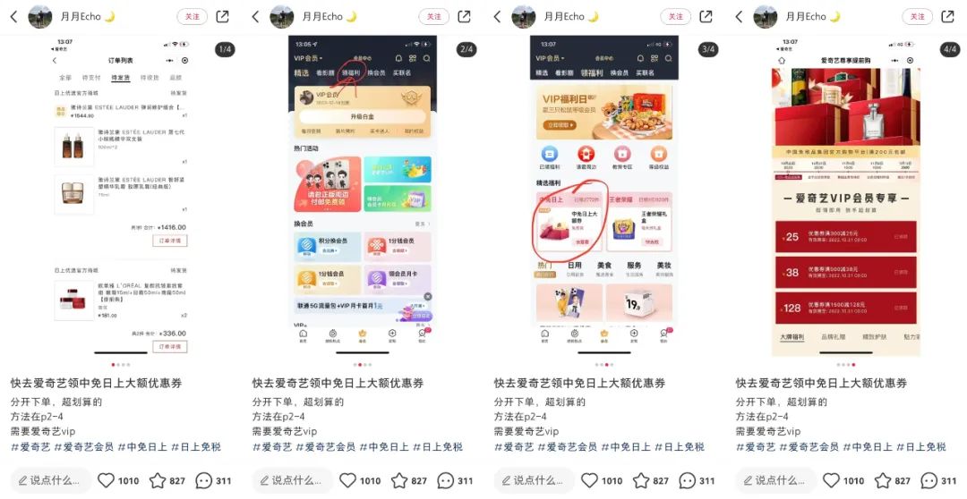 当犀牛君在一个女性居多的群里,看到名为“快去爱奇艺领中免日上大额优惠券”的小红书链接,多少有些惊讶。群里近半个月交流拼单、发链接、拉表格、做攻略已经是常态,但爱奇艺的名字出现在了双11攻略里,还是始料未及。