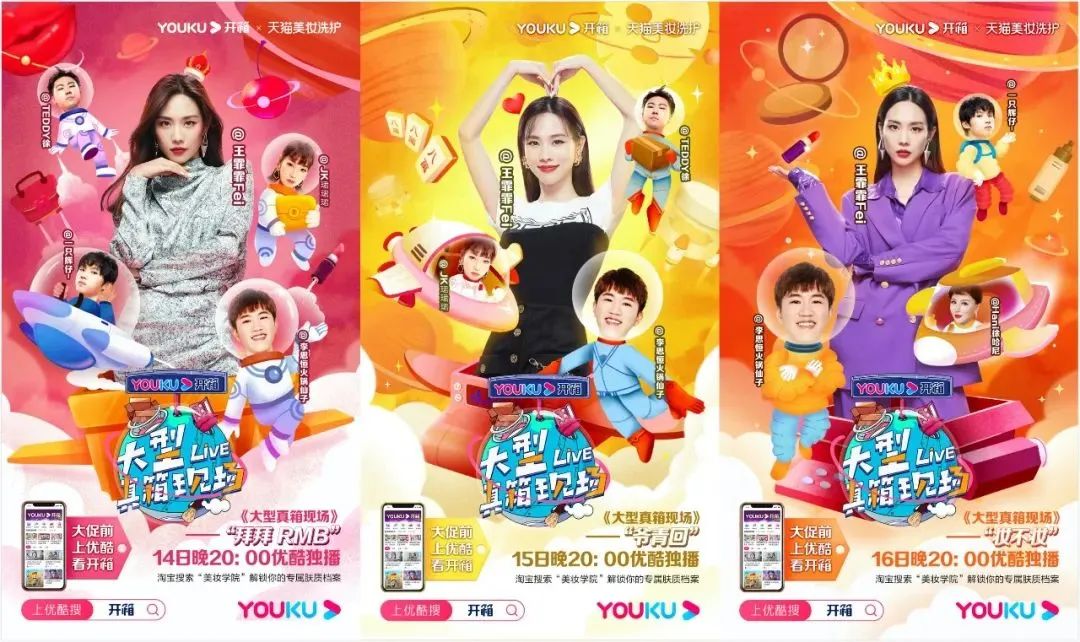 早在2020年,优酷开始发力短视频和直播业务的时候,曾经与集团的双11活动联动,宣布成为“天猫美妆双11官方种草平台”,还邀请王霏霏作为“好物推荐官” 上线相关微综艺《大型真箱现场》,在频道页汇聚近千开箱达人输出内容。