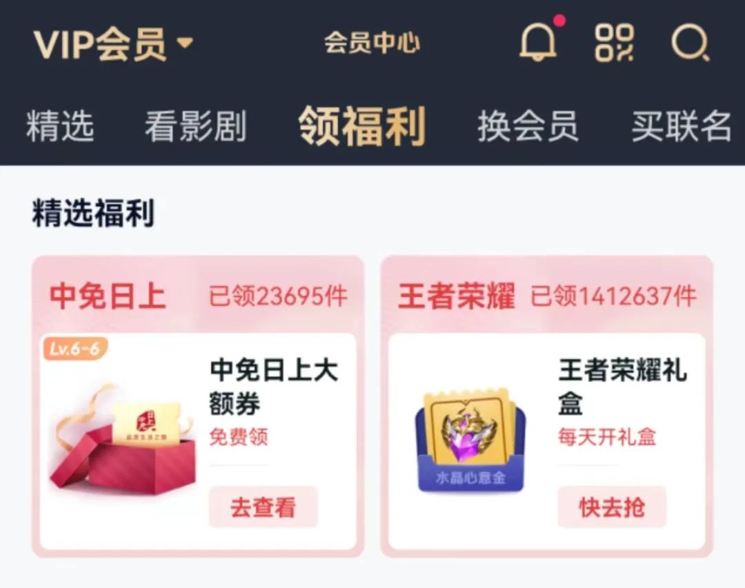 同样的,中免日上大额券的领取也是在爱奇艺的会员中心,而且从页面提示看需要达到LV6会员才可领取,根据资料这需要用户成为会员达到三年以上,他们通常具有较强的消费能力和相对更积极的消费观念。
