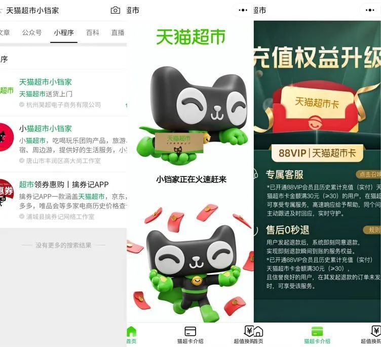 仅在近期,有消息称在今年初切断了淘宝联盟和京东联盟外链的快手,将从10月28日起重新恢复淘宝联盟商品链接;同样在双11前,一款名为“天猫超市小铛家”的微信小程序,也刚刚在双11前上线,运营主体是天猫科技全资子公司。