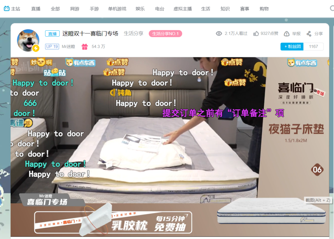 B站在今年双11前夕突然正式在直播分区中上线了购物专区,相关专区内的直播间几乎全量开放了购物“小黄车”功能,UP主也都几乎添加了相关的购物链接。此举被行业解读为加入双11正面战场。